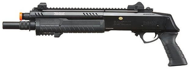 BO Manufacture REP FABARM STF12 Short 11" Pump Action Gas Shotgun The BO Manufacture REP FABARM STF12 Short 11" Pump Action Shotgun, available at Airsoft Megastore, is a powerful and compact weapon designed for airsoft enthusiasts. Officially licensed by FABARM, this shotgun features a robust polymer build with a barrel assembly for durability. The ergonomic pistol grip ensures comfort during use, while the uniquely designed fore-end provides enhanced grip for smoother pump action. Equipped with a 20mm Picatinny under rail, it allows for the attachment of foregrips, and the removable front and rear sights improve target acquisition. With a muzzle velocity of 300-310 FPS, this gas-powered shotgun delivers reliable performance in any scenario.
