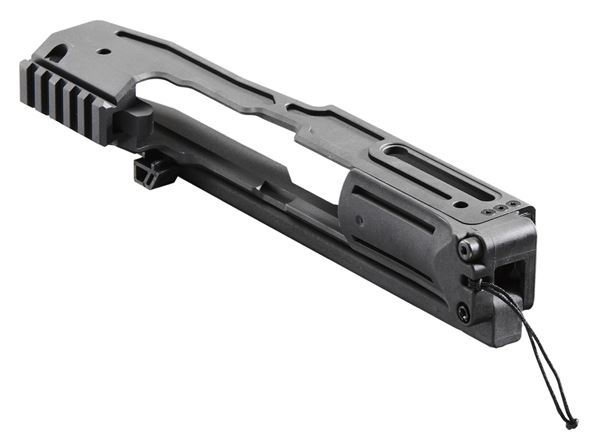 Measuring 24.4 inches in length, the B&T Officially Licensed USW Polymer Conversion Kit for G-Series GBB Airsoft Pistols provides the perfect balance of compact design and extended functionality. Equipped with a rapid-deploy folding stock, the kit allows users to switch from pistol to stabilized shooting configuration in seconds, greatly improving accuracy during fast-paced engagements. A full-length 20mm top rail offers space for optics such as red dot sights, while the lower under-barrel 20mm picatinny rail supports tactical add-ons like flashlights, lasers, and vertical grips. By upgrading your Glock into a carbine-style setup, players can enjoy better control, improved recoil management, and enhanced versatility in a wide range of scenarios. The B&T USW conversion kit is ideal for players who want to maximize their airsoft pistol's potential while maintaining lightweight mobility. Whether you're running it for CQB games or looking to add tactical realism to your loadout, this officially licensed accessory delivers performance, style, and practicality. Please note that the pistol is not included with the kit.