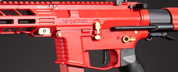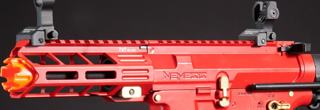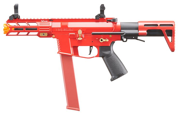 The Nemesis X9 is Classic Army's entry into the 9mm AR Machine Pistol segment in Airsoft. It's the first on the market to feature a full metal receiver, CNC machined out of aluminum, done up in a very aggressive machined billet styling. This compact firecracker is a great main gun, or even a sidearm in close quarters situation, both indoor and outdoor. The Classic Army Nemesis X9 AEG Airsoft SMG is their latest rifle from the Nemesis series of airsoft guns. This rifle was designed to give players at all levels the ultimate tool to take down any and all oppositions. The X9 features an M-LOK front rail system for customization options such as grips, tactical flashlights, and lasers. This unique SMG is constructed from a full metal billet style body, with a custom designed vented front handguard. Front and rear flip-up sights allow players to quickly and accurately zero in targets, or can be flipped down out of the way when using an additional optic accessory.