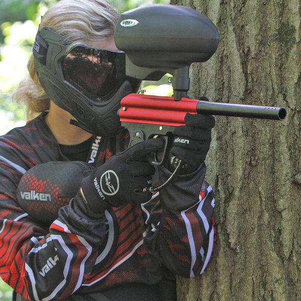 The beating heart of the Razorback paintball gun includes a quick-pull Delrin self-lubricating bolt for reduced maintenance and quick cleaning, premium o-rings for extended service life and a patent-pending Self-Centering cup seal to improve consistency, reliability and all-around performance! Other standard features of the Valken Razorback include a clamping, vertical feed neck to hold on to any hopper, a double trigger for increased rates of fire, a ported aluminum barrel, simple rear velocity adjuster, a bottom line bottle adapter and the ability to function efficiently on CO2 or compressed air! For affordable paintball gun firepower, don’t settle for a plastic paintball gun when you can enjoy the trustworthy performance and rugged reliability of the Valken Razorback! Features: